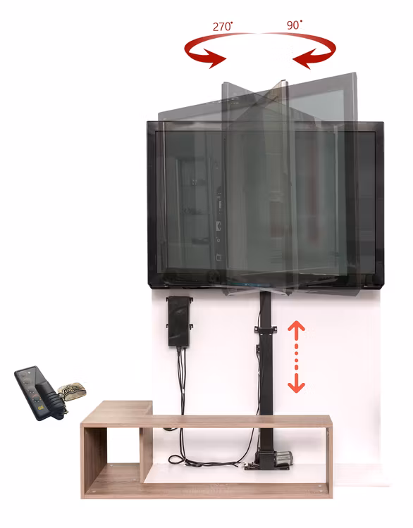 En uppgraderad modell till Sabaj Tv - Lyft / Hiss Premium 95cm med den skillnaden att man med den här har möjlighet till att rotera 360º i uppfällt läge. Perfekt i exempelvis öppna ytor som ett kök/vardagsrum där du vill kunna se TV från olika håll vid olika tidpunkter.