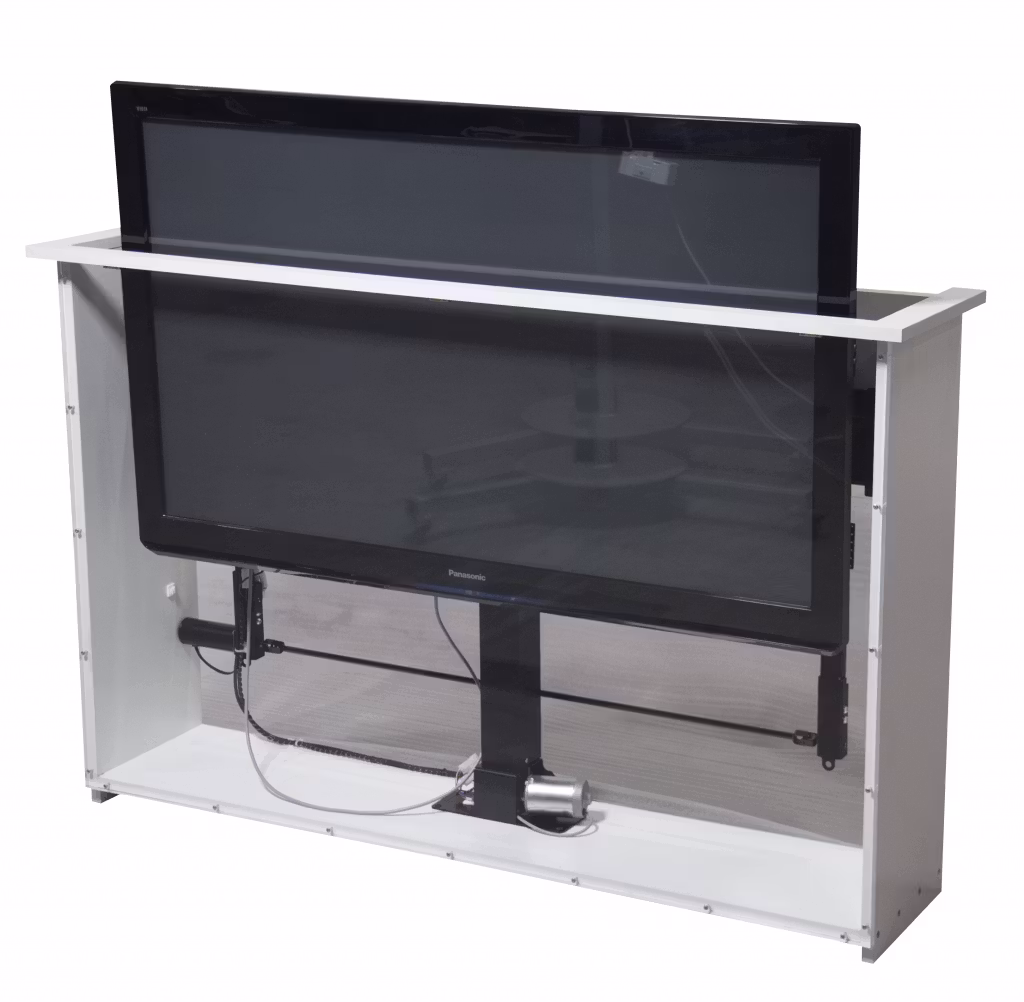 Om du vill ha traditionell lucköppnare måste liften lyfta tv:n höjd SAMT lockets djup och lite till, annars slår tv:n i locket. Du måste alltså räkna bort lockets djup från tv:ns höjd för att veta hur stor tv du kan montera